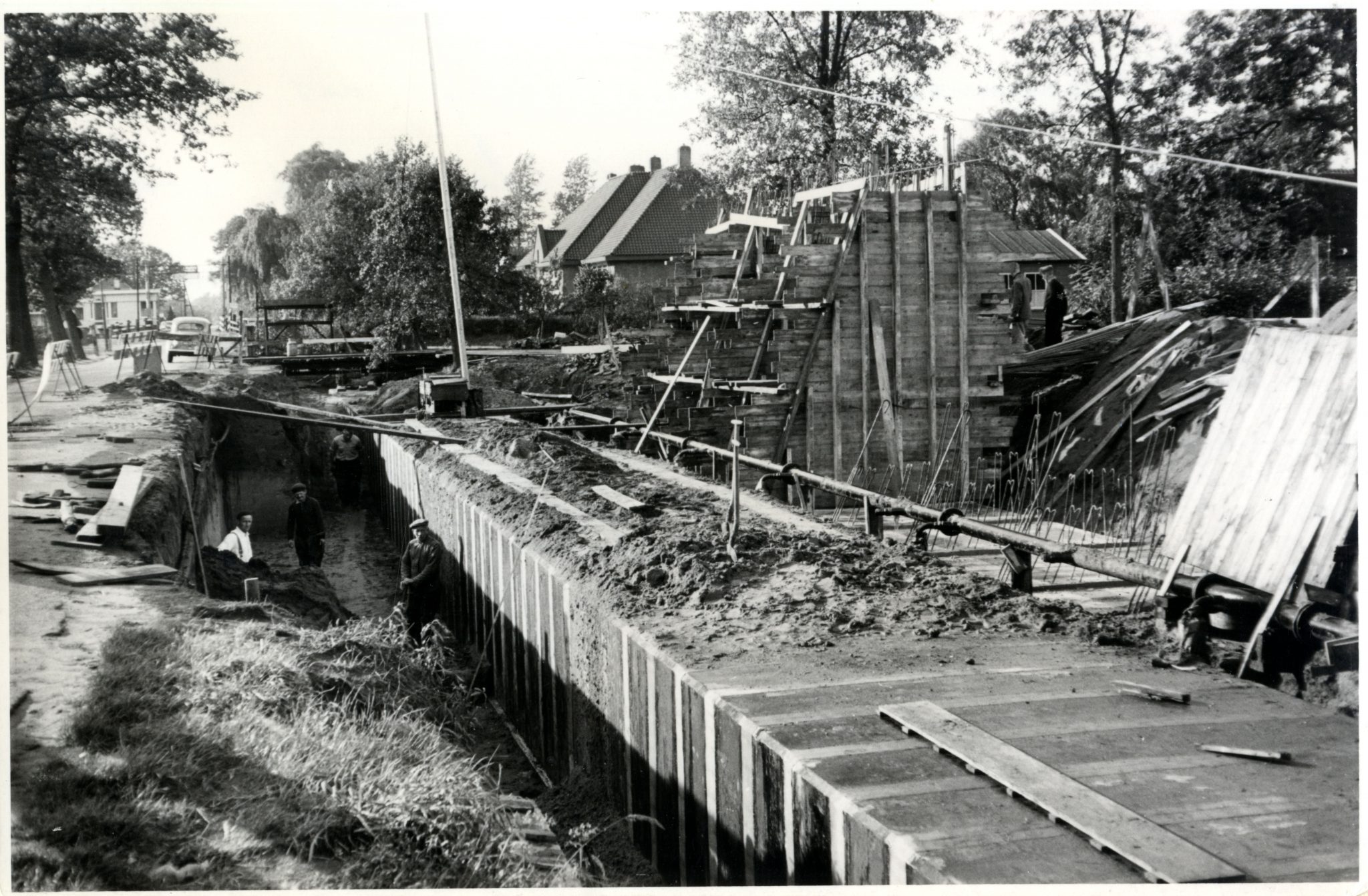Bij Groenekan werd een nieuw kunstwerk gebouwd voor de A27 dat over de bestaande Groenekanseweg liep. Een deel van de bestaande bebouwing moest hierdoor verdwijnen en ook sloten werden gedempt of omgelegd. Het karwei nam vele jaren in beslag. Ad Kon maakte de foto tijdens de aanvangswerkzaamheden. Op de achtergrond de spoorwegovergang.