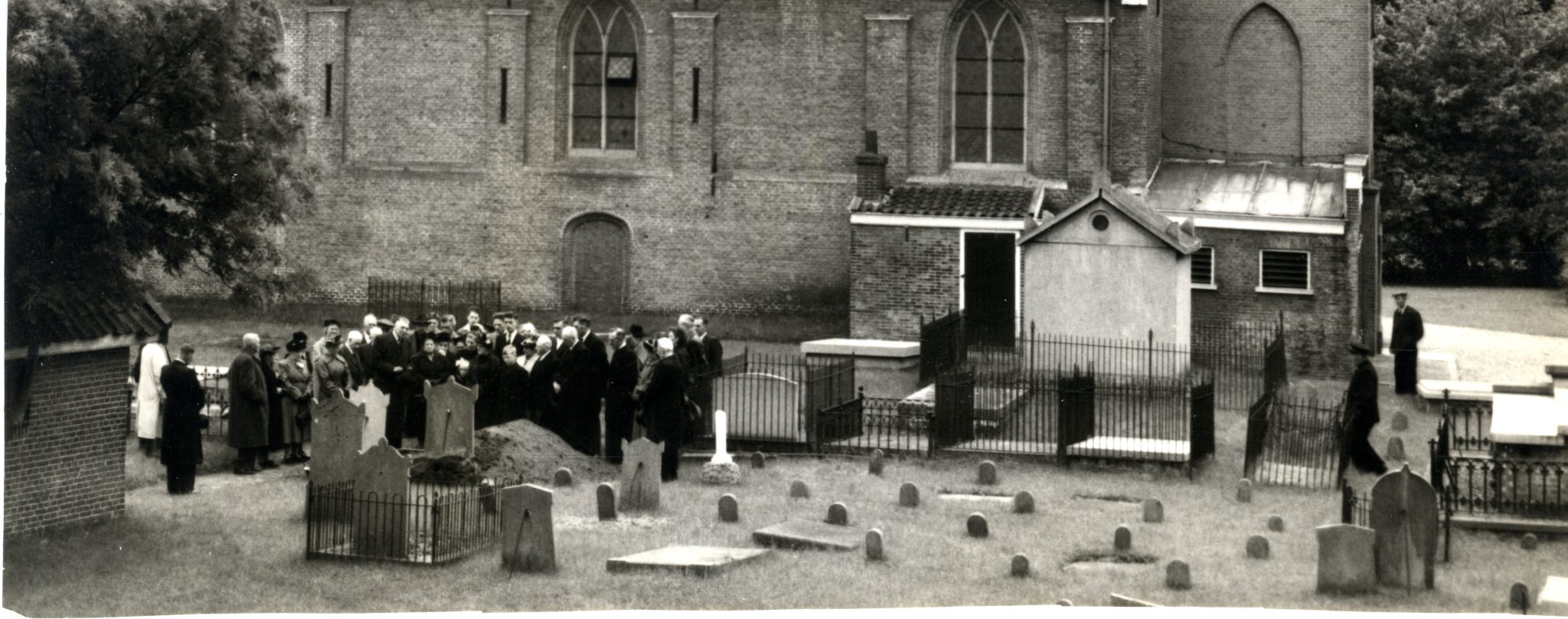 Ad Kon legde vanaf de Burgemeester de Withstraat vast hoe in het familiegraf van de familie Steengracht van Oostcapelle het lichaam van de Douairière Steengracht van Oostcapelle werd bijgezet.
