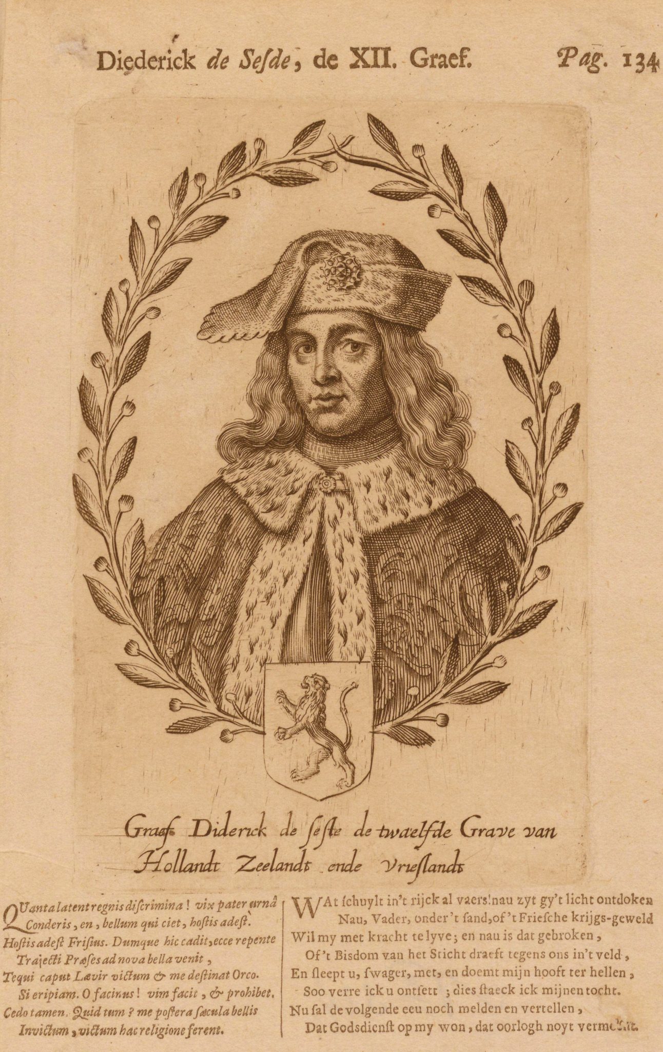 In het jaar 1125 – drie jaar nadat Oostbroek als klooster erkend was – werden Fastrad Scherebard en zijn echtgenote Sophia daarin opgenomen. [Graaf Dirk VI. Anonieme prent uit 1667.]