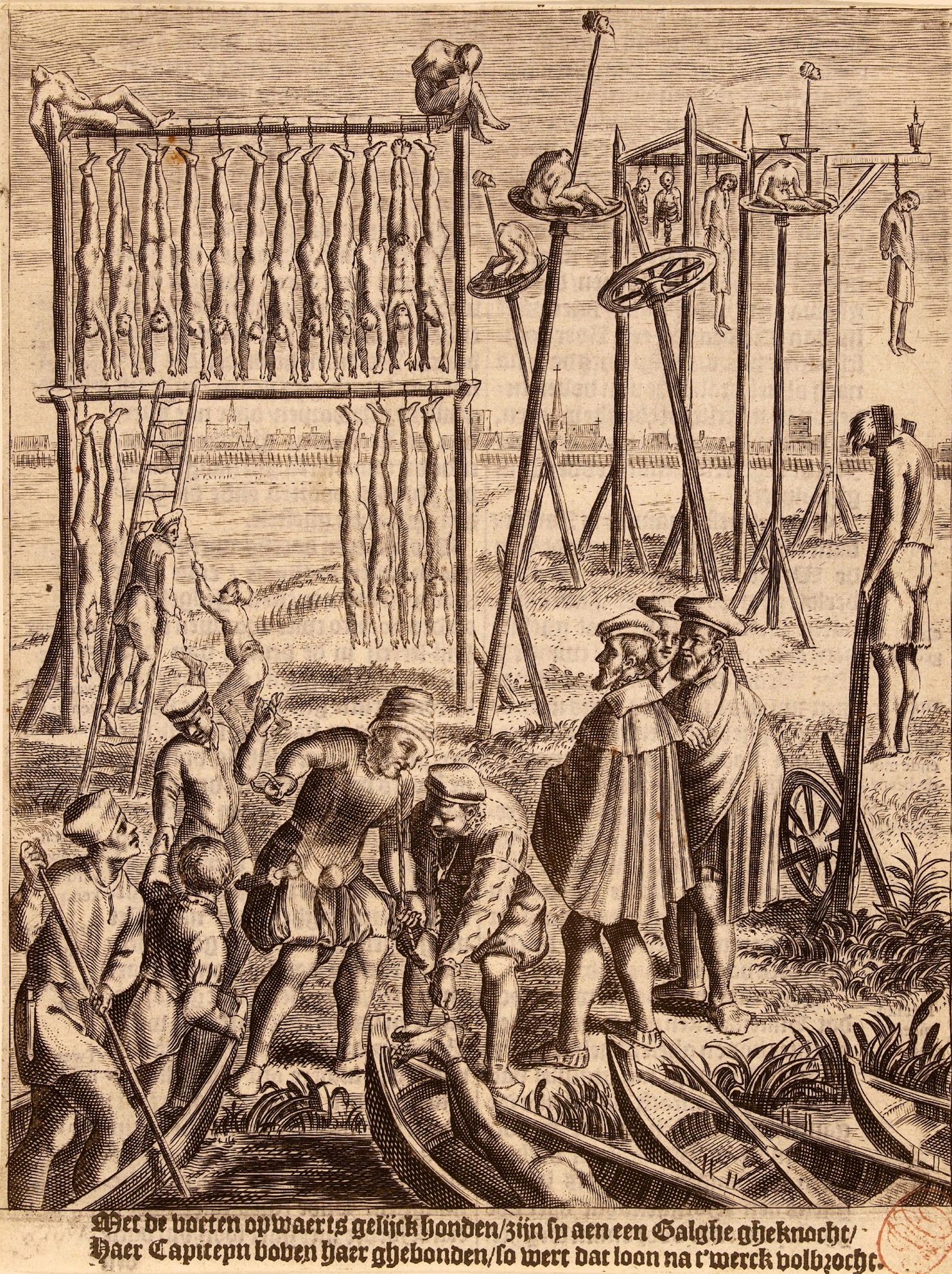 Op 10 maart 1532 werd de in Westbroek geboren wever Philips Wyntgenszn. in Amsterdam ter dood veroordeeld. [De lijken van de wederdopers op het Amsterdamse galgenveld, 1535. Rijksmuseum Amsterdam.]