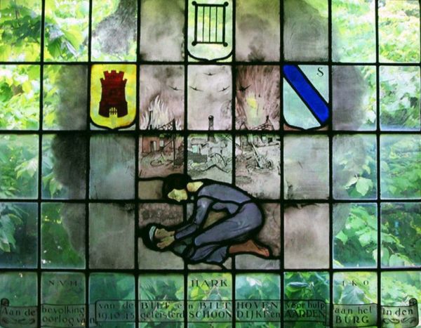 De hulp bleef niet onopgemerkt. Op 11 juli 1946 brachten de burgemeesters van Aardenburg en Schoondijke een officieel bezoek aan De Bilt. Ze legden een krans bij het houten kruis voor de gevallenen en kondigden een blijvend eerbetoon aan: een gebrandschilderd glas-in-loodraam voor de trouwzaal van het gemeentehuis. Het raam, ontworpen door Jan Boon en vervaardigd door atelier Bogtman, toont de wapens van de drie gemeenten, oorlogstaferelen en iemand die zich ontfermt over een slachtoffer; een verwijzing naar de barmhartige Samaritaan. (Zie de afbeelding hieronder.)