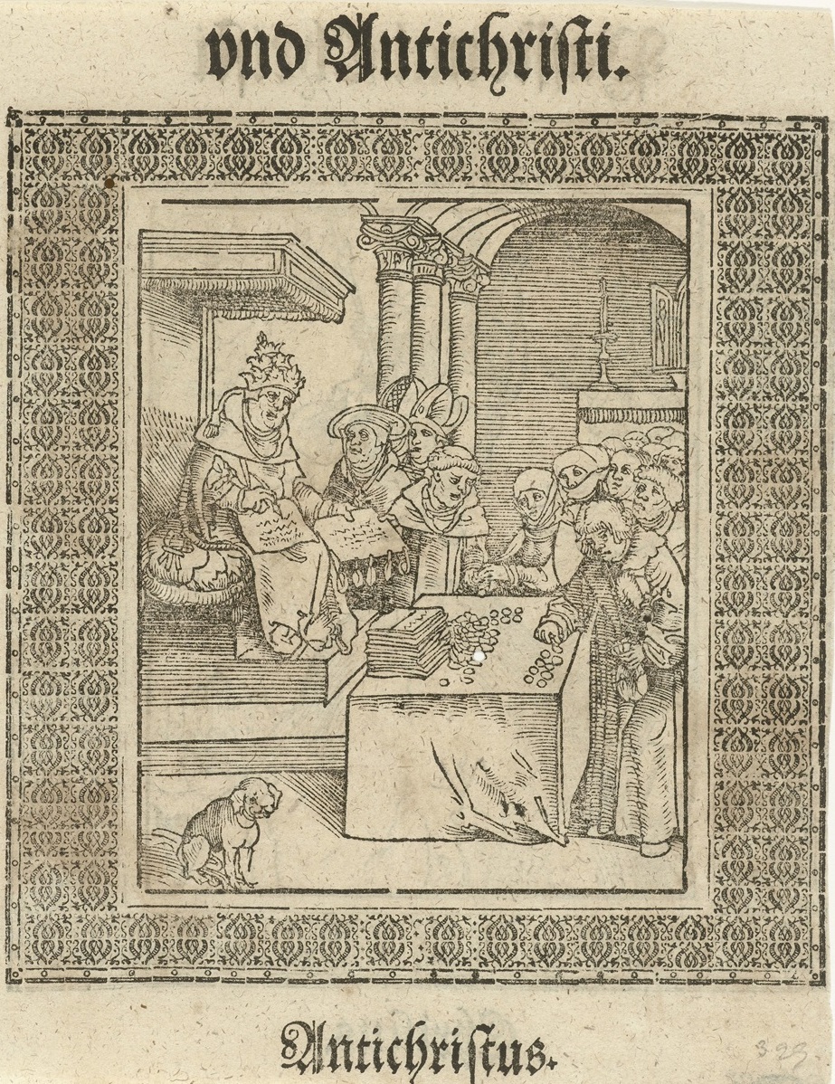 Op 31 oktober 1517 vond een gebeurtenis plaats die de loop der wereldgeschiedenis diepgaand zou beïnvloeden. Luther maakte per brief zijn 95 stellingen bekend. Daarin bekritiseerde hij vooral de handel in aflaten. Met Luthers publicatie laat men de Reformatie beginnen. Prent: De Paus ontvangt aflaatgeld. (Lucas Cranach (I) 1521 – 1522, Rijksmuseum Amsterdam.)